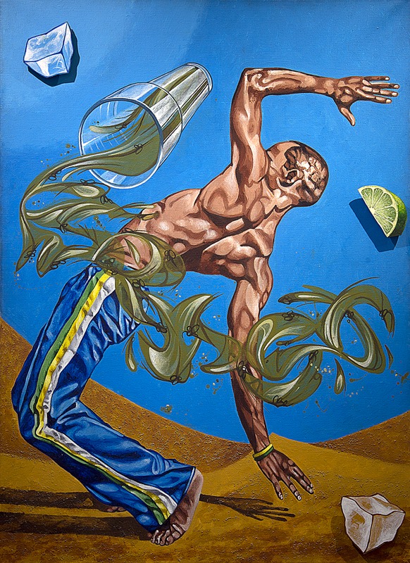 Dans cette composition, l’artiste poursuit sa recherche autour du mot Blast, dont les lettres se mêlent aux silhouettes en mouvement.